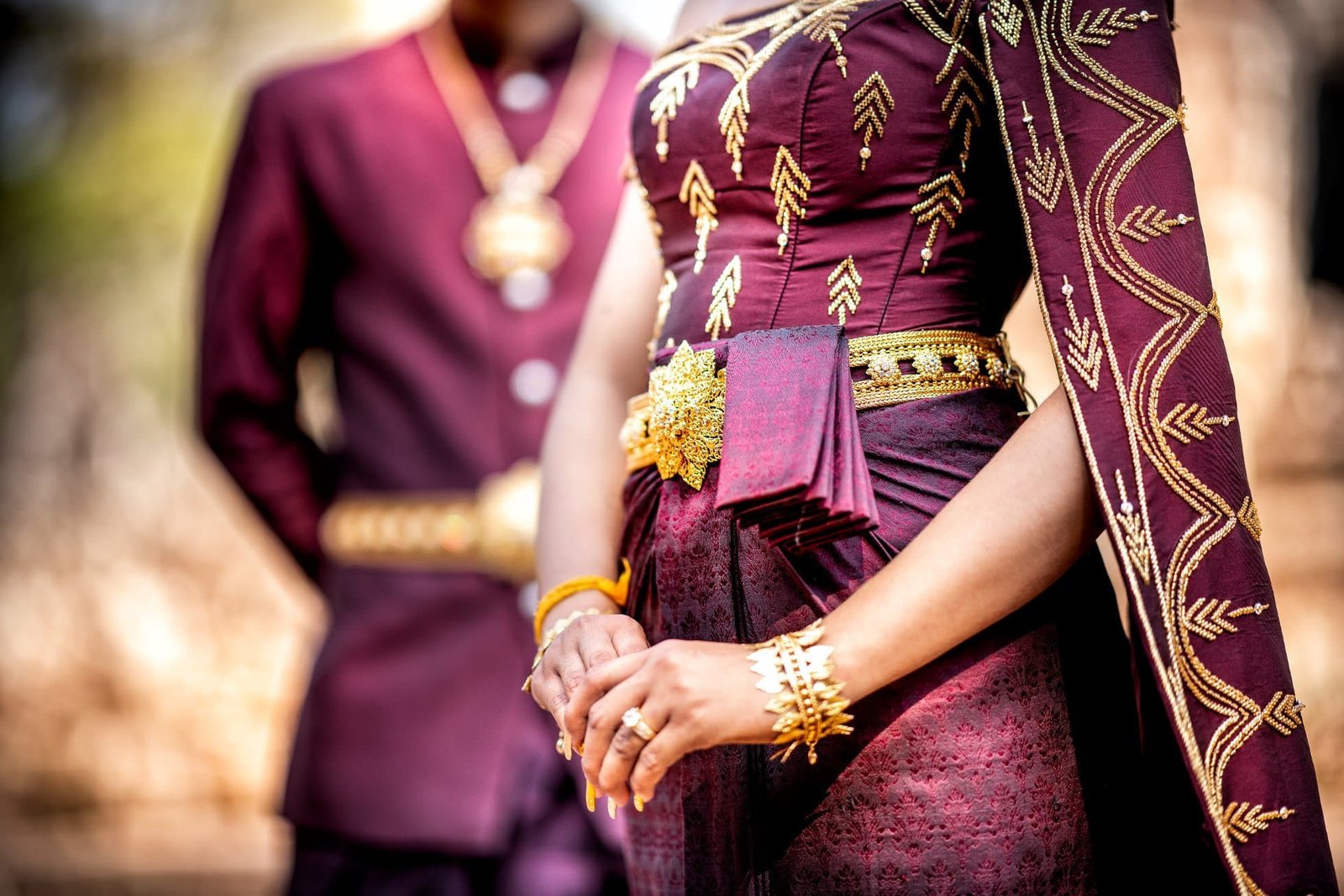 La sposa indossa uno dei coloratissimi abiti tradizionali, finemente ricamati d’oro.