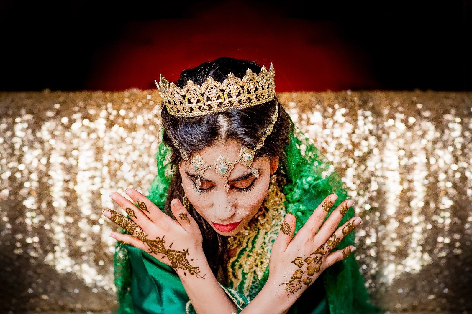 sette regioni del Marocco: il Caftano verde e oro per la cerimonia dell’henné; il