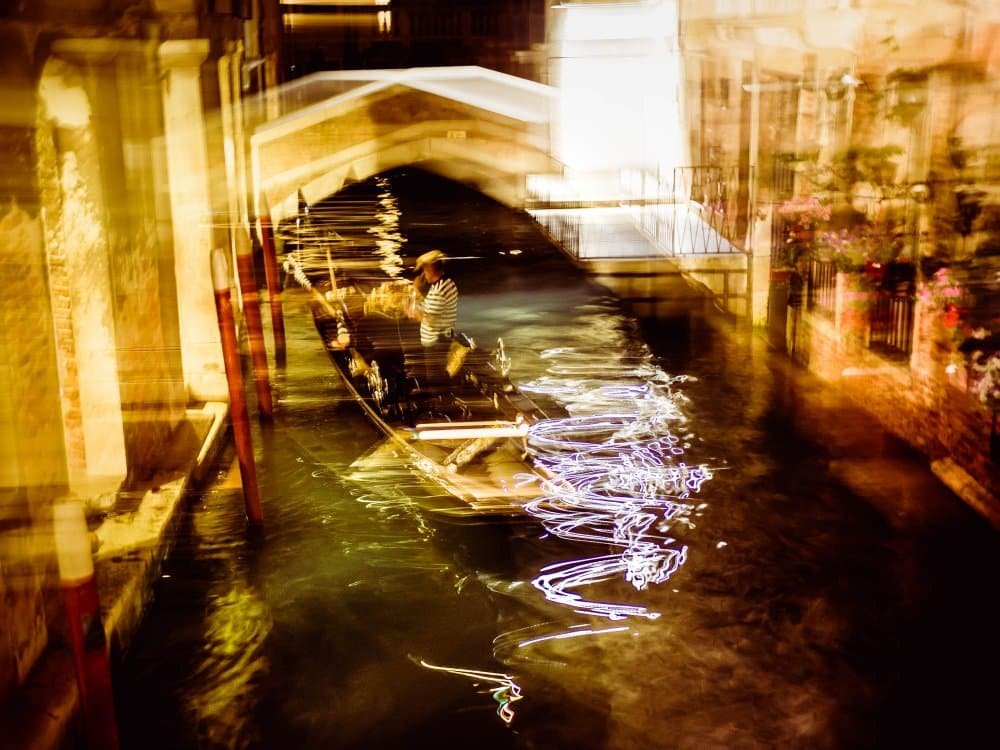 ゴンドラと、運河の穏やかな水面に映る古い建物のファサードの間で、街の隅々まで、日没までの散歩に魔法のように寄り添った。